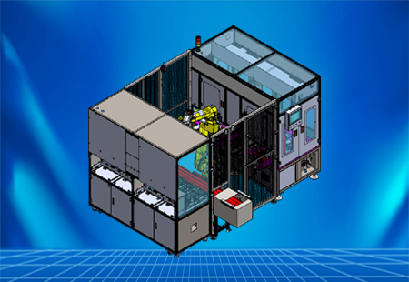 该设备用于3C产品的自动拆螺丝上下料。采用tray盘上下料。通过六轴机器人把tray盘内的治具投入到四个流道载台上进行螺丝拆卸和检测,六轴机器人再将拆卸的内中板放入到tray盘内,拆卸的产品放入到下料皮带线的拆螺丝设备。此设备可以减少人力,降低生产成本,提高产能,便于管理。