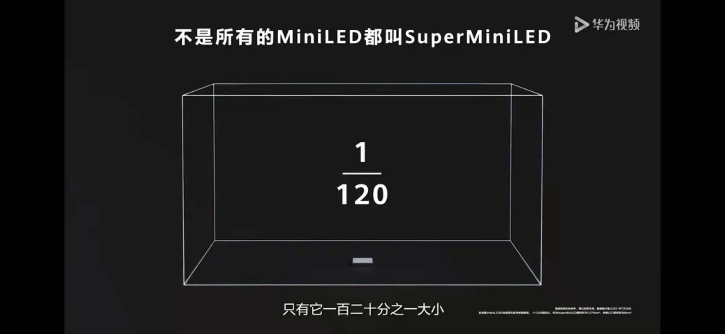 Super画质代表的就是Mini LED背光显示技术。华为智屏V 75 Super Mini LED使用数量高达46080颗,拥有全球最多物理分区——2880分区,峰值亮度达3000nits,色域覆盖97% DCI-P3,屏幕刷新率为120Hz,实现超精细控光和高动态显示效果,智慧屏V 75 Super的灯珠面积仅为0.075mm?,是传统LED灯珠面积(9 mm?)的1/120,因此华为智慧屏V 75 Super的表现非常不错。
