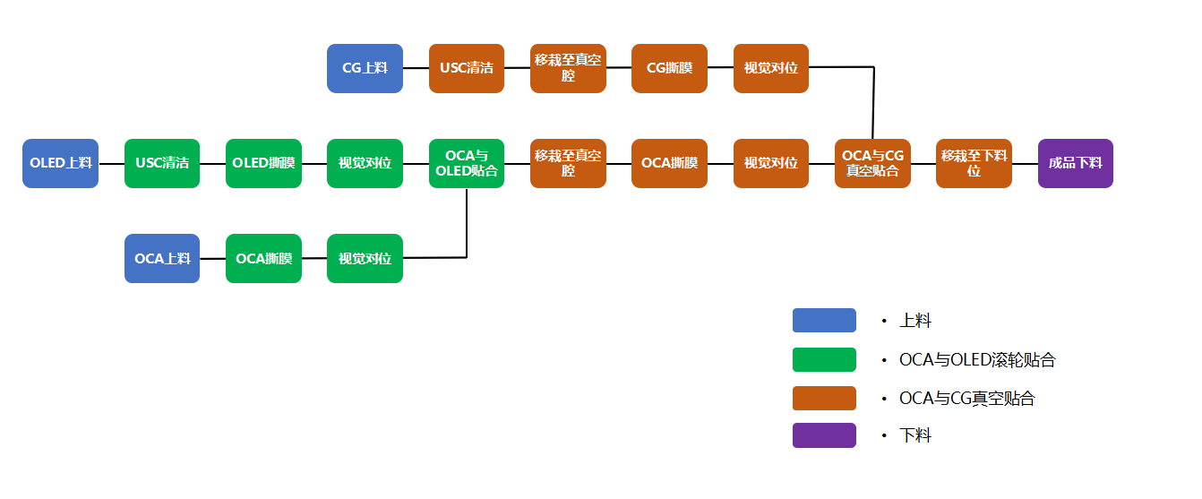 OCA:下膜采用胶带;上膜采用滚轮+夹爪