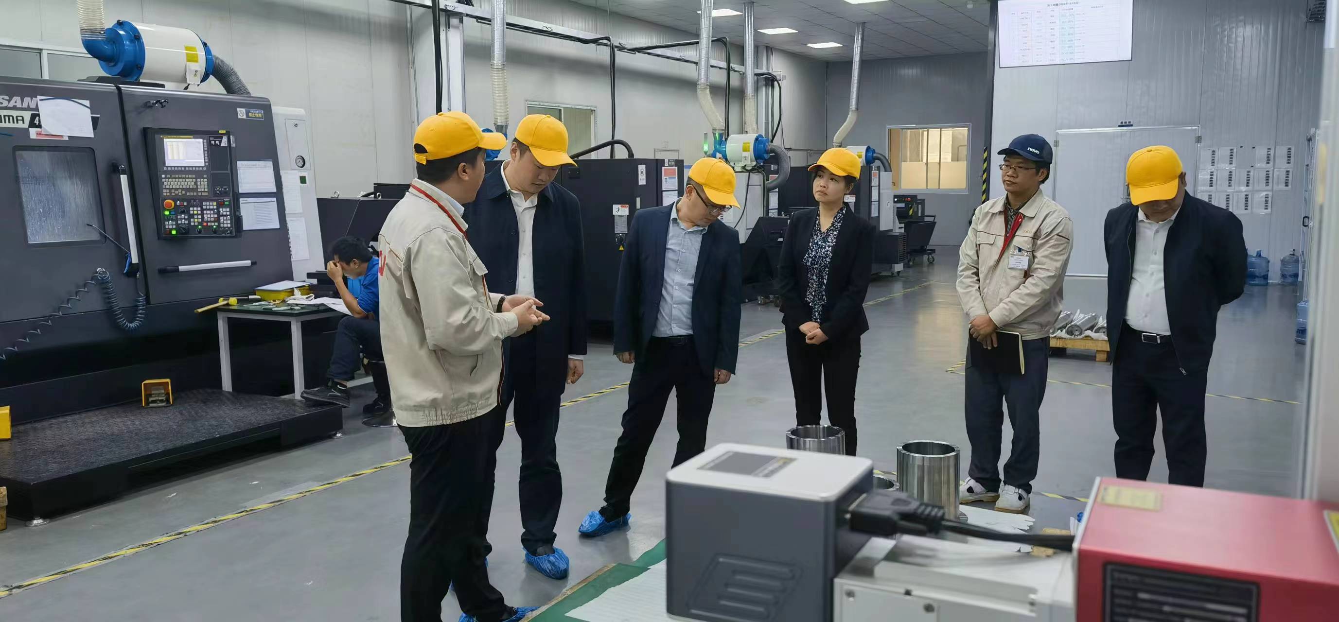 接待会议后,美狮会总经理郑俭先生带领崇州市领导们前往美狮会装备车间进行参观,并针对现场的加工设备做简要说明。