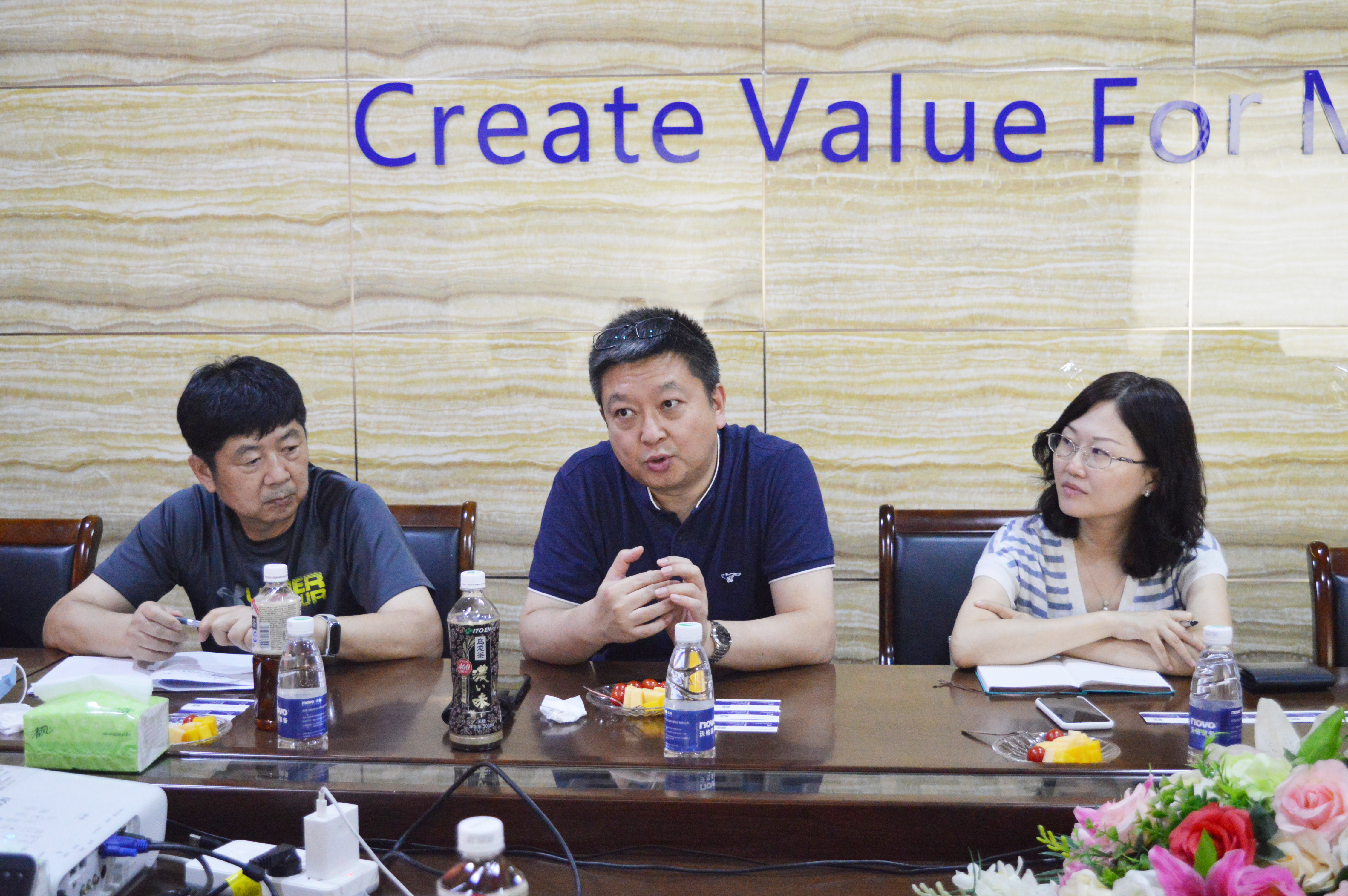 中国光学光电子行业协会液晶分会胡春明常务副秘书长、北京大学微纳电子学系王漪教授在美狮会装备总经理郑俭先生的讲解下对美狮会装备有了初步的了解,并与美狮会装备总经理郑俭先生、副总经理高华先生共同探讨关于TFT-LCD + Mini LED背光、Micro LED等显示新技术的发展方向与趋势,同时对美狮会装备新产品的研发提出建设性的指导建议。